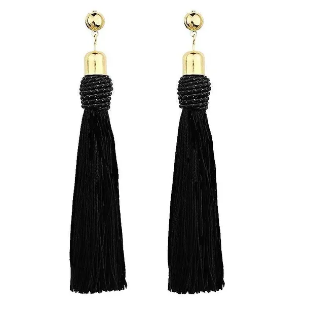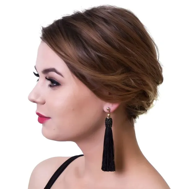Podkreśl swój styl wyrazistym akcentem! Długie, czarne kolczyki z frędzlami (chwostami) to połączenie elegancji i modowego charakteru, które pasuje zarówno na wieczorne wyjścia, jak i na co dzień.
